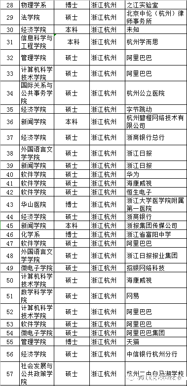 2020届赴杭毕业生去向